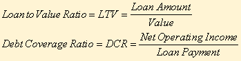 Many of the terms in the above equations have common elements. For instance, NOI is common to both CR and DCR, Loan Payment is part of the Cash Flow calculation. Cash Flow is NOI (dollars available to "cover" the debt) less the loan payment. Common terms in the equations allow us to rearrange and combine terms in ways that permit us to look more closely at the process and the relationship between the variables. |
